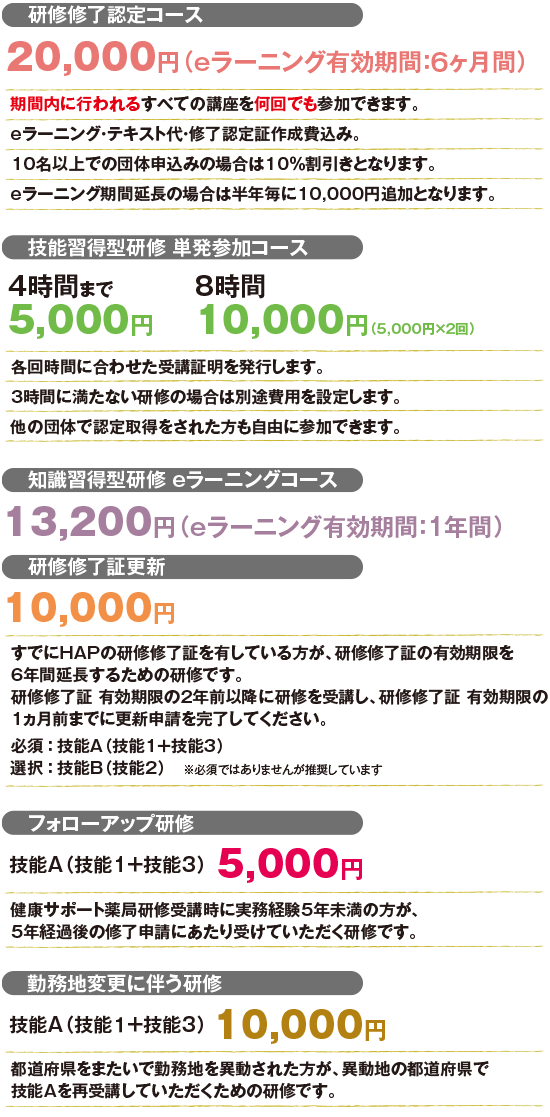 健康サポート薬局の研修費用体系別コース